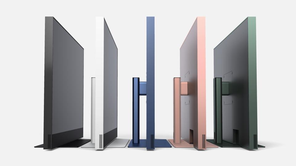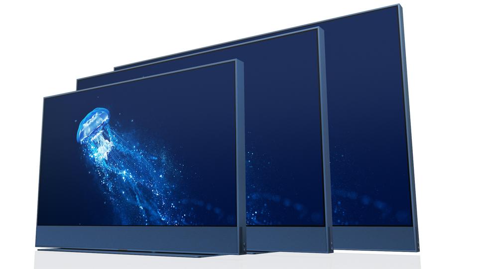 The screen comes in three sizes, small, medium and large. These are respectively 43-inch, 55-inch and 65-inch screens, all elegantly designed and available in a range of five colors from demure and understated (black or white) to deliciously colorful: blue, green and pink. This is a stunningly-designed package down to the absence of a logo (you need to look round the back to see the word Sky etched on to the TV stand) and the presence of a built-in soundbar.