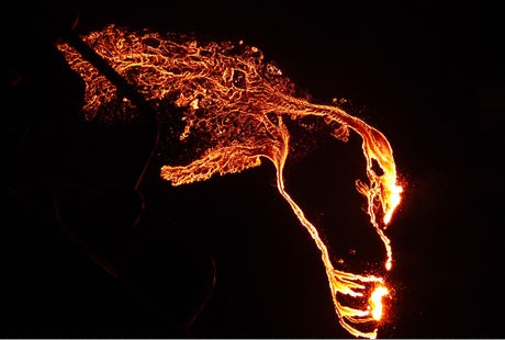 Some four hours after the initial eruption at 8.45pm GMT, lava covered about one square kilometer or nearly 200 football fields.