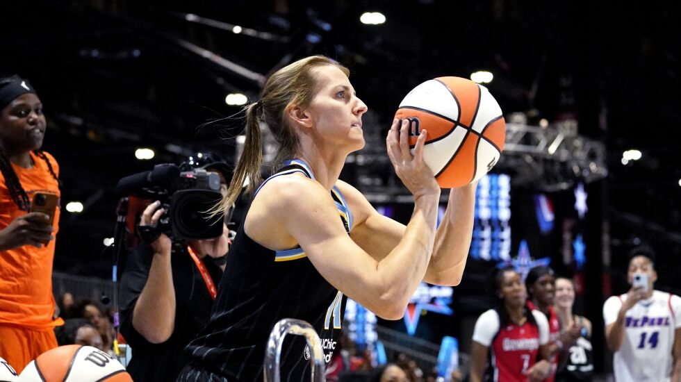 Quigley advanced past the first round after scoring 26 points, the highest among the six competitors, as Vandersloot and Parker looked on from the scorer’s table. Mystics guard Ariel Atkins and Dream rookie Rhyne Howard advanced to the second round, as well, each finishing with 24 points.