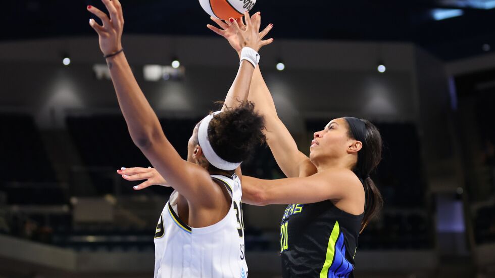 The Sky’s first preseason game is Friday against Harrison’s former team. Guard Marina Mabrey won’t make the trip to Dallas. She was scheduled to arrive in Chicago on Thursday, the same day the team was flying out.