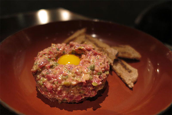Signature starters include tangy Yellowfin Tuna (620) and Beef (690) tartars. The former with pine nuts, capers ,wasabi, and vegetable crudités, the latter with US prime tenderloin, cornichons (pickled cucumber), Dijon mustard, Worcester, Tabasco, mayo, capers. Toy soldiers of toasted rye bread counter the succulent zing with soft crunch.