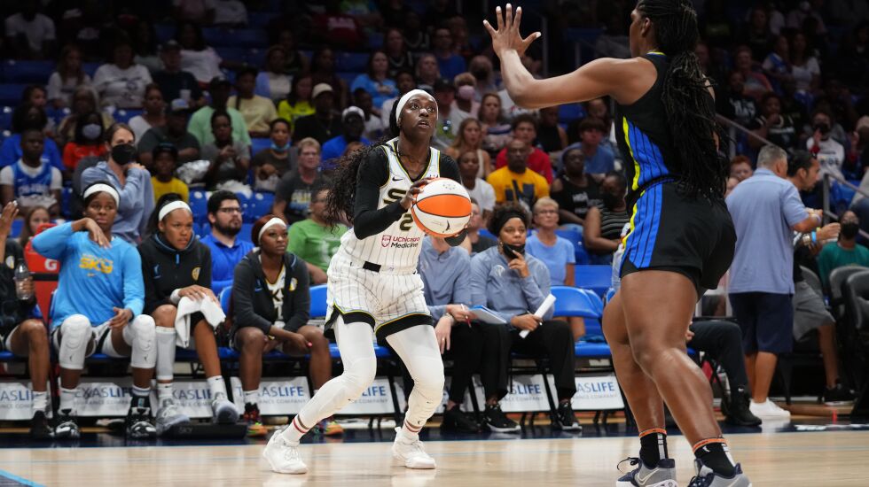 The Sky had a difficult time defending the Wings from beyond the arc and sent them to the free-throw line 27 times. Guard Marina Mabrey went 3-for-5 from deep and led the Wings with 22 points. Arike Ogunbowale added 15 points, and Allisha Gray had 14.
