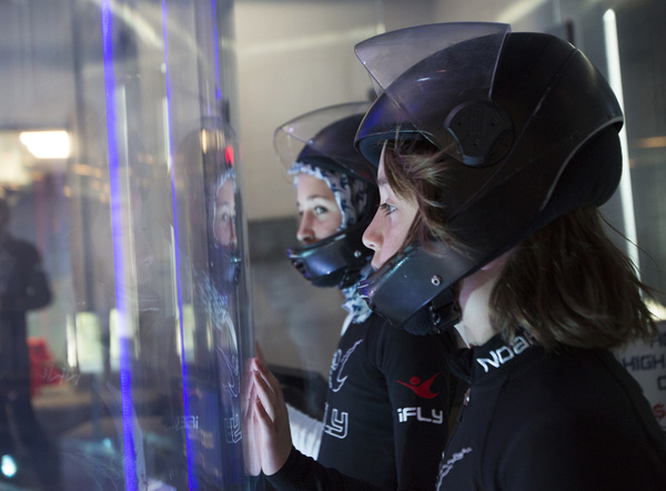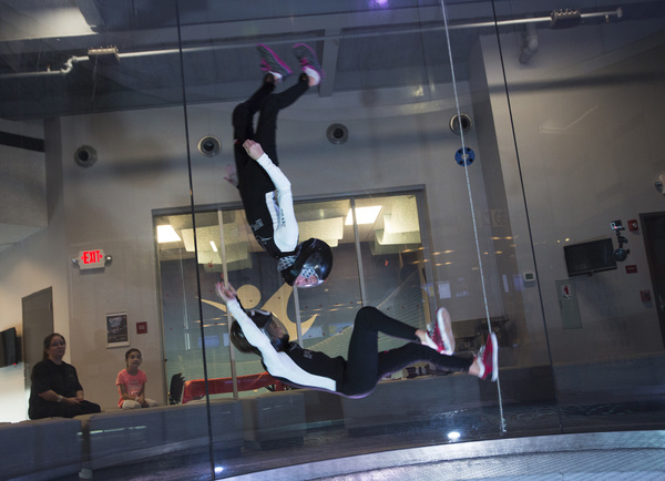As the two train on weekday mornings at iFly, neophyte customers waiting their turn for a few minutes in the flight chamber watch in awe as Kayleigh and Noah rocket around like leaves whipped in a strong wind.