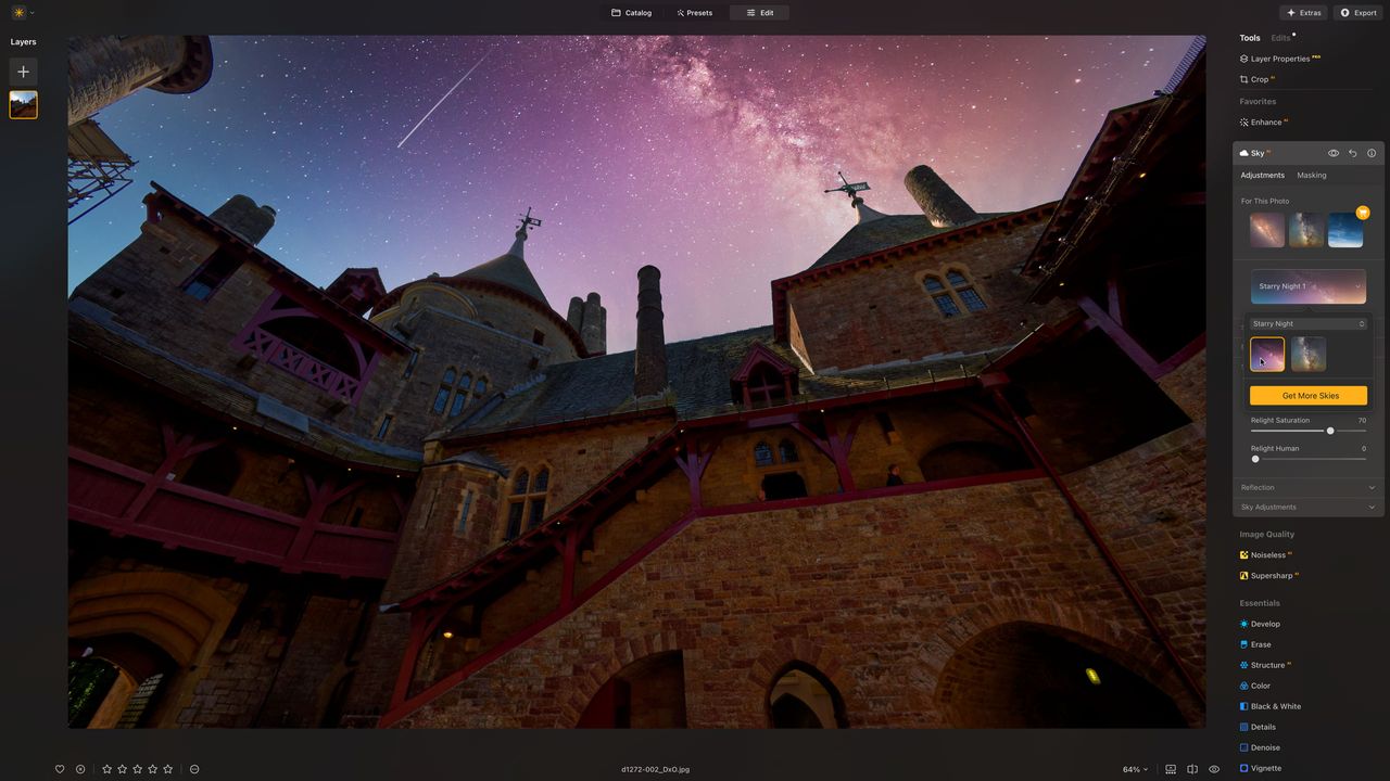 What it’s not so good at is traditional photo-editing techniques, where conventional photo editing rivals are just more direct and logical, with more control and less ‘magic’. Luminar’s Catalog feature is useful but basic, and its presets are average at best – and it’s all bound up in a workflow that can often leave you wondering where things are and what just happened.