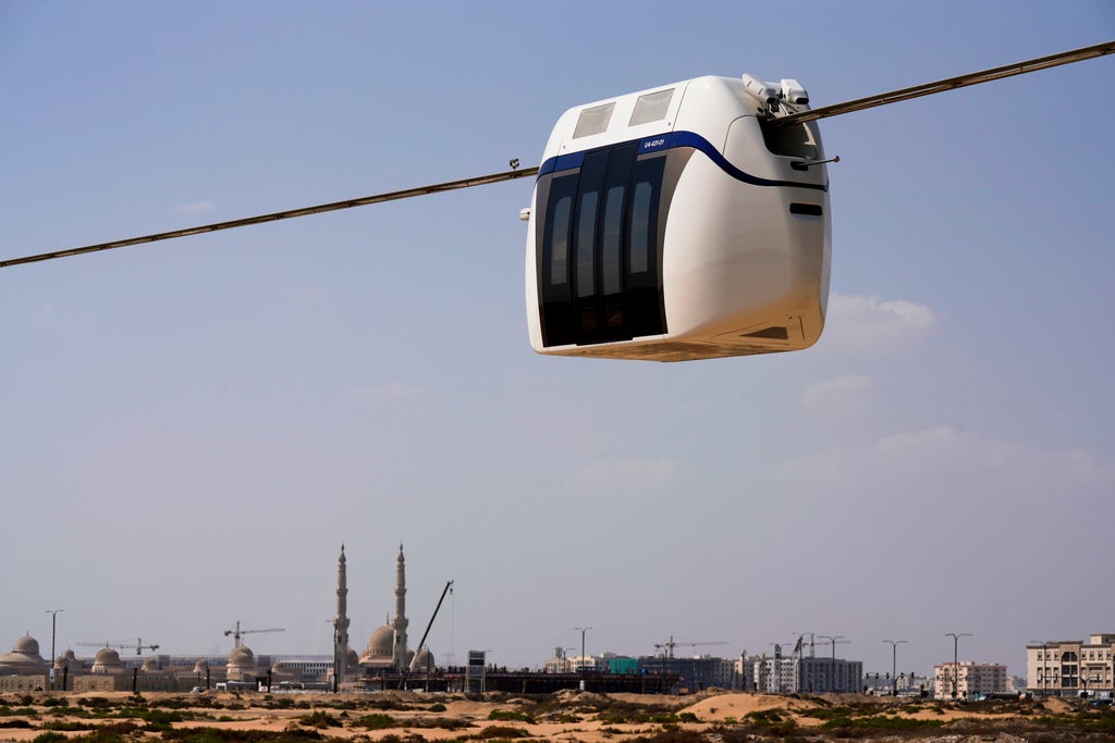 The uSky project, whose luxury cabin bears the SkyWay logo inside, carried journalists Thursday across a 400-meter (1,300-foot), straight-line suspended track at the Sharjah Research, Technology and Innovation Park. The pod moved at nearly 50 kph (30 mph), though an engineer insisted a longer track would allow the speed to increase as much as threefold. The line above it remains still as the pod races across it between poles.