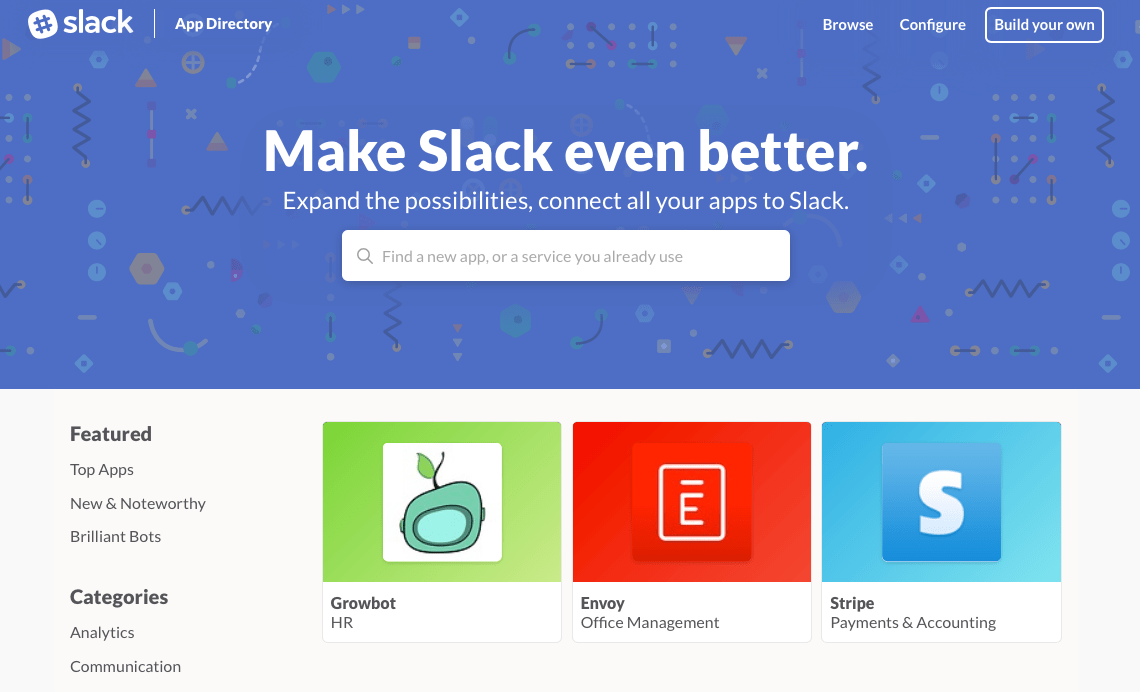 Central to Slack’s new initiative is an application programming interface (API) that allows developers to connect the messaging service with their own applications. At last count, there were already more than 150 “approved” applications connected with Slack, including well-known services such as Twitter (TWTR), Dropbox, Google (GOOG), and Uber.