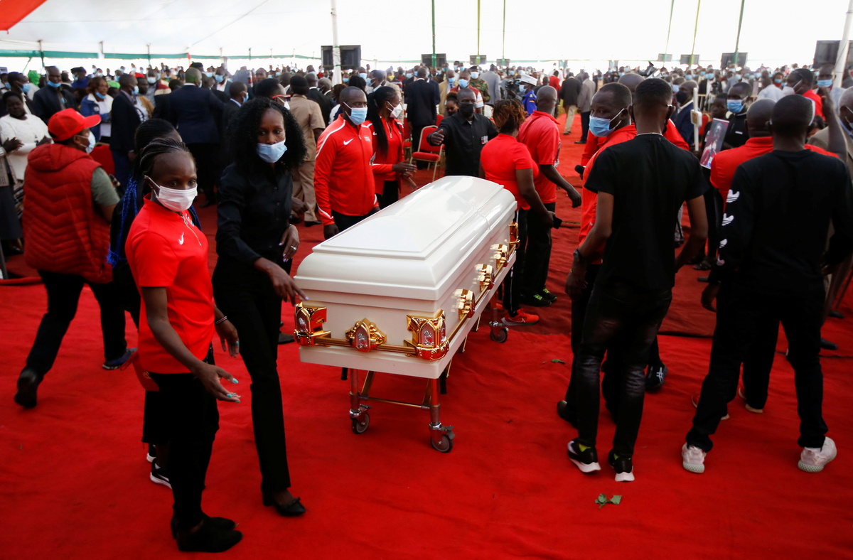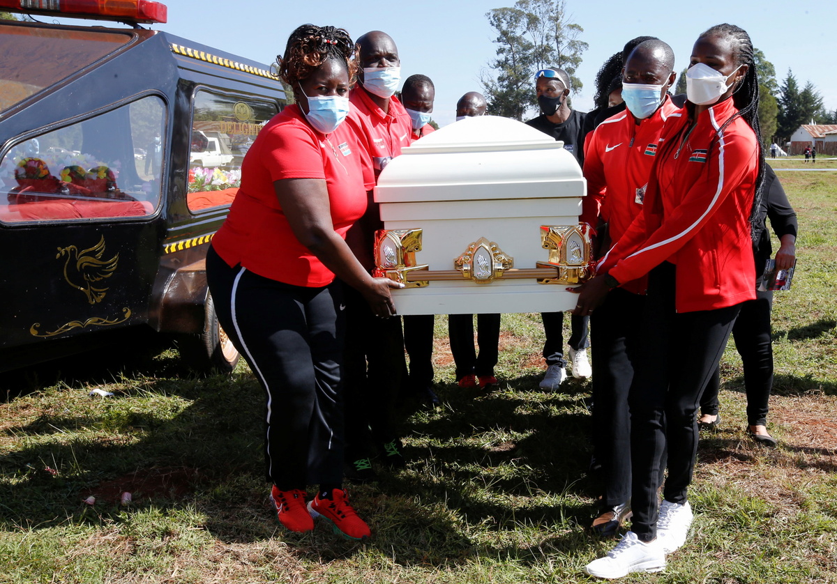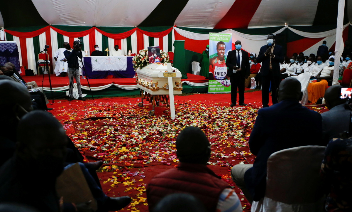 Her funeral was held on the day she would have turned 26. Mourners including fellow athletes lined up to scatter flowers on a white coffin. A picture of Tirop, grinning and holding up a bronze medal, was placed on top of the coffin.