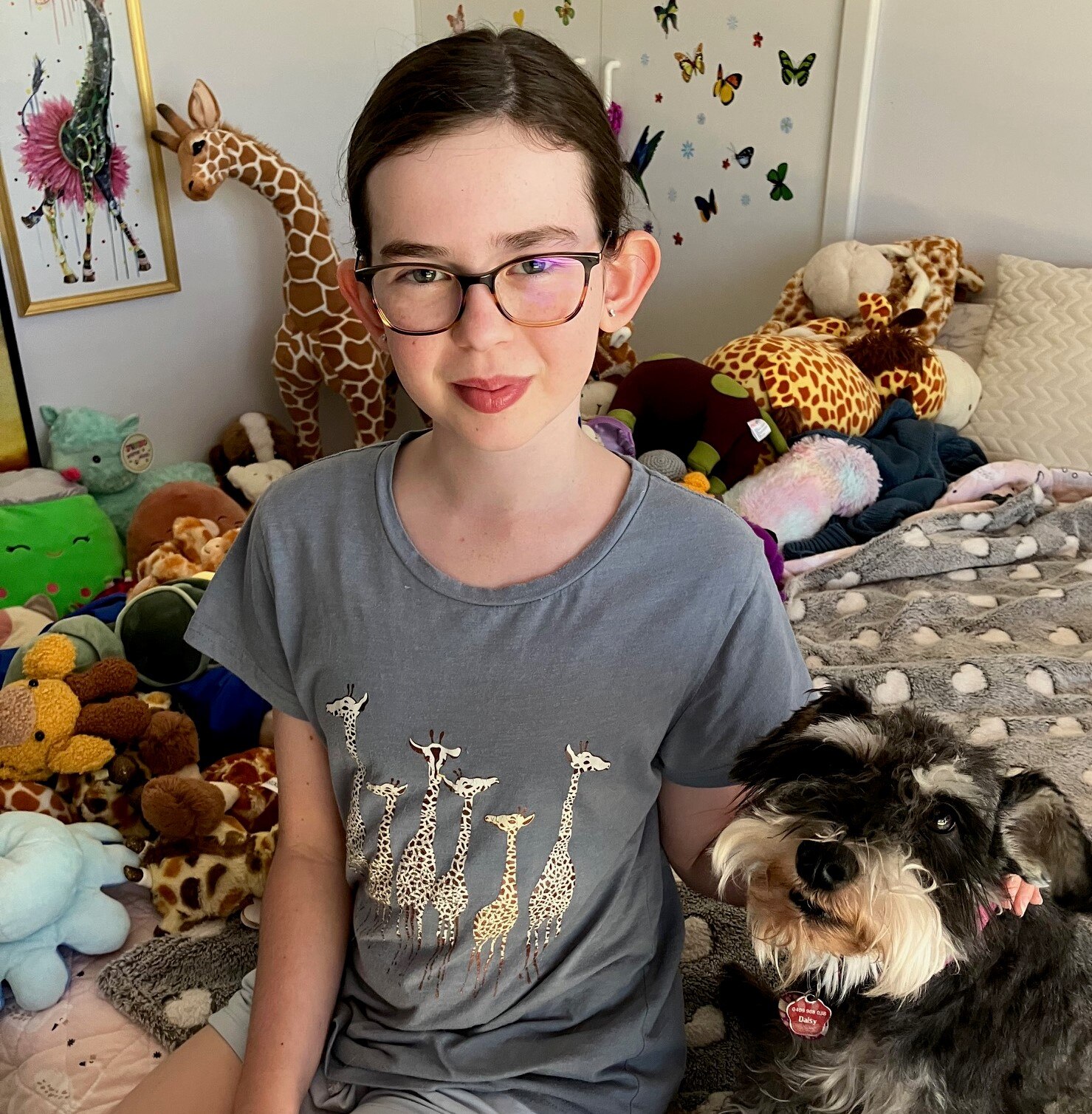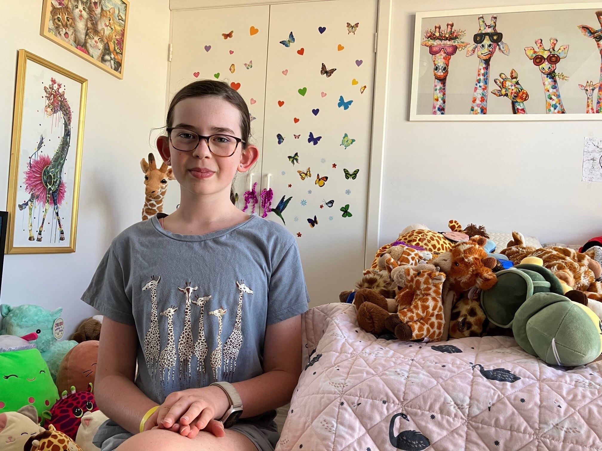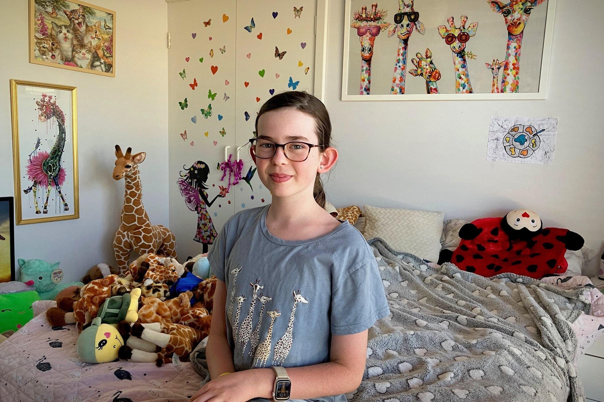"She also must get into bed a certain way and the blankets must be just right. She also sleeps with about 30 giraffe toys in her bed, but has her two main ones that she hugs," she said.