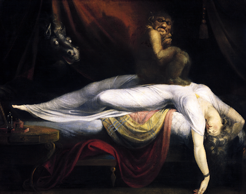 Until the Renaissance promoted scientific evidence over religious superstition, it was commonly believed that troubled sleep was caused by malevolent witches. Many of the old names for sleep paralysis align with this idea: being “hag-ridden”, for instance, or of being attacked by a bewitched horse known as the “mara”, from which we get the term “nightmare”.