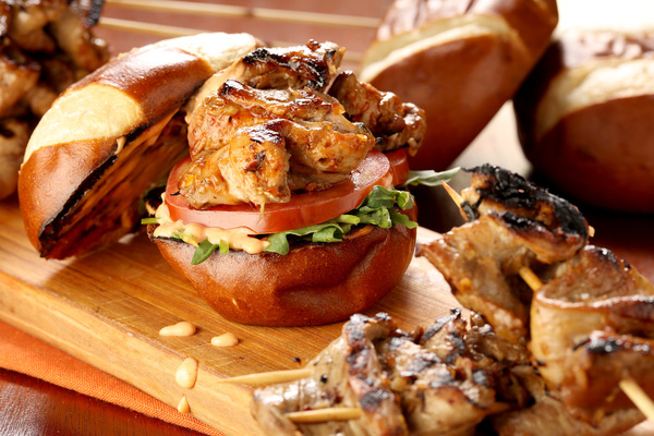 This "slice, season and skewer" technique can be applied to almost any kind of lean, tender meat, such as pork tenderloin, leg of lamb, flank steak, and chicken thighs or breasts. I use olive oil, fresh oregano and crushed garlic with lamb slices, then tuck the grilled meat into toasted pita with cucumber-yogurt sauce. Chicken thighs brushed with red curry paste taste great wrapped in warm naan breads.