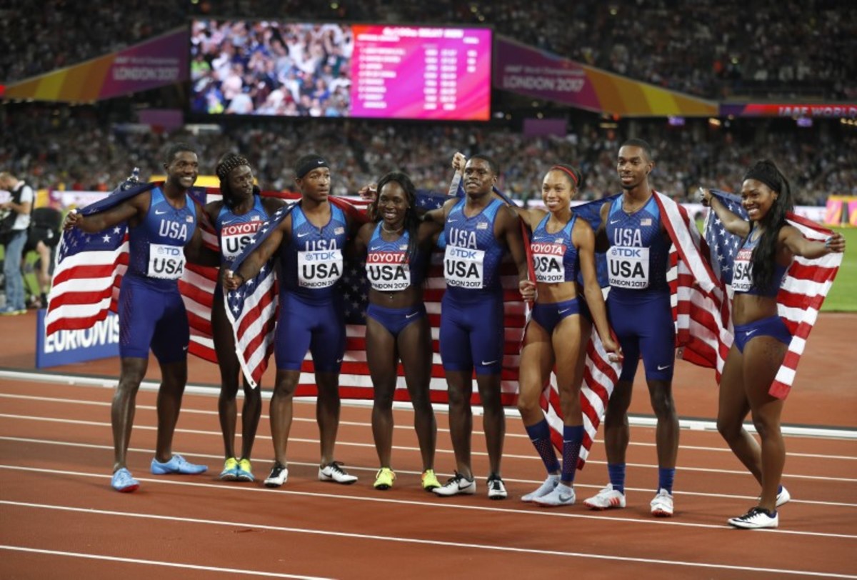 The U.S. men took silver in 37.52 but for a nation that used to be totally dominant in the event, it was only their second medal in the last eight global finals after a series of world and Olympic disqualifications.