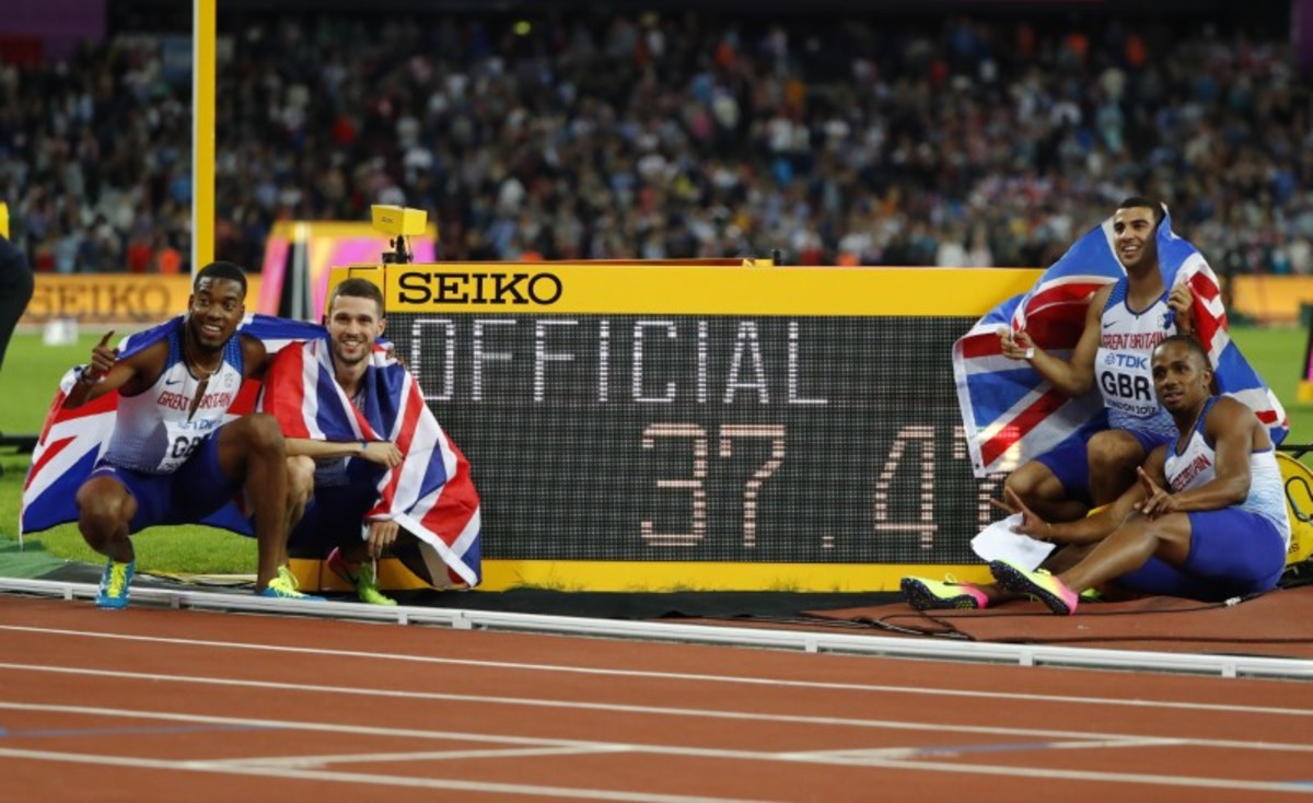 Britain's only other men's global sprint relay golds came in the 1912 and 2004 Olympics while their winning time that beat their 1999 best of 37.73 has only been bettered by Jamaica and the U.S.