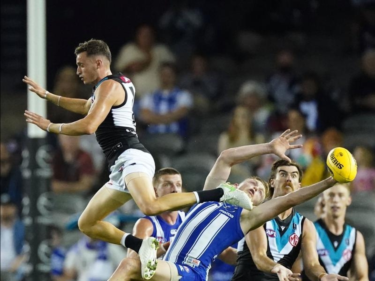 Port Adelaide flexed their muscles to kick off their AFL premiership assault with a dominant 52-point win over North Melbourne under the roof at Marvel Stadium.