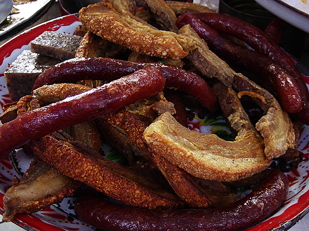 Chinese pork sausage usually has lard in the mixture.