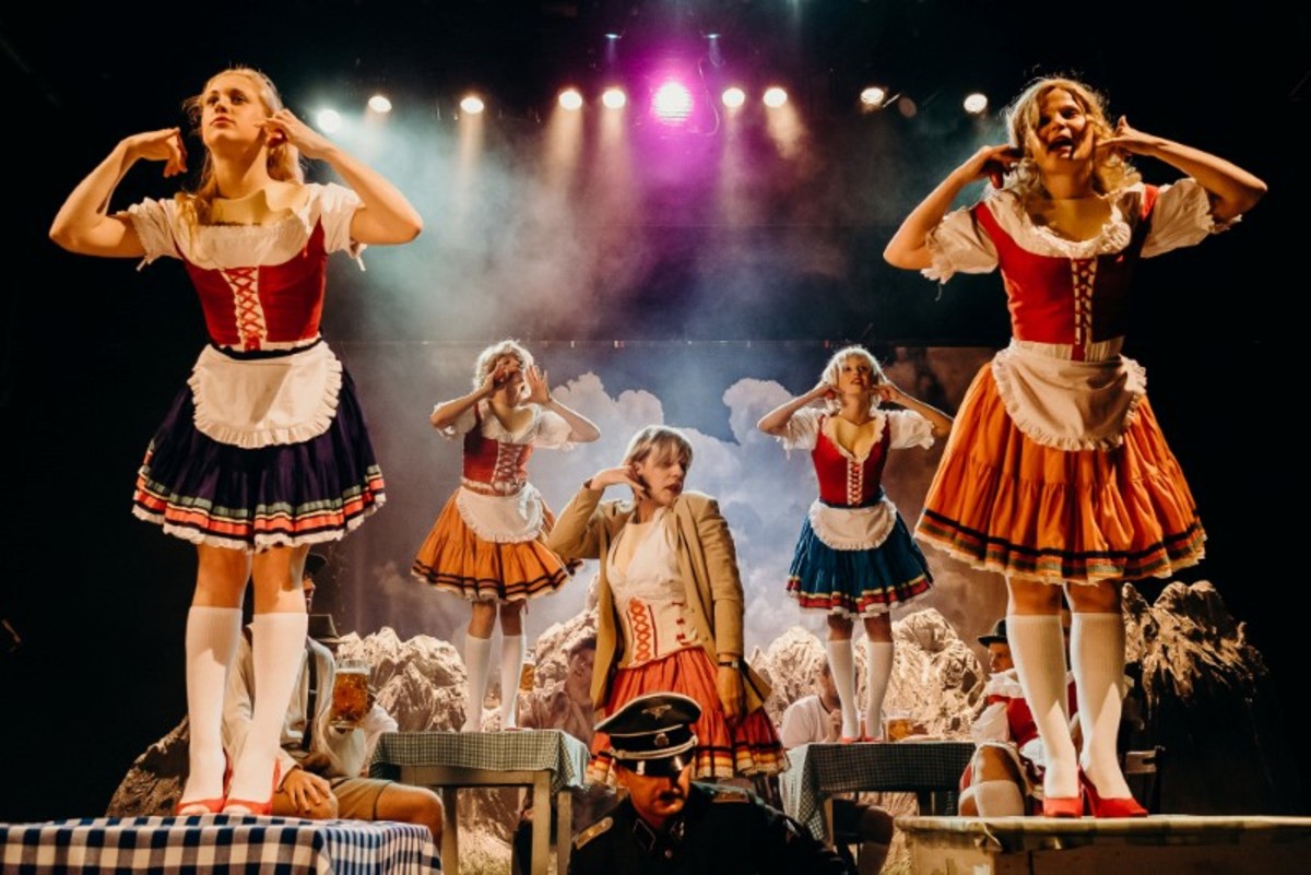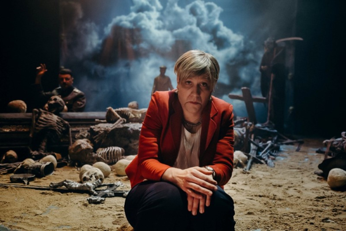 Actor Klemen Slakonja plays the German chancellor Angela Merkel in Ljubljana, Slovenia, April 23, 2017. Picture taken April 23, 2017. Jani Ugrin/Handout via REUTERS