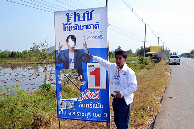 Natthapatch Chanmaen, a representative of Thai Raksa Chart in constituency 1 in Ratchaburi, filed a complaint with police in Photharam district on Monday after a poster was damaged. "You can like or dislike any parties -- but don't damage posters used for their campaigns," he said.
