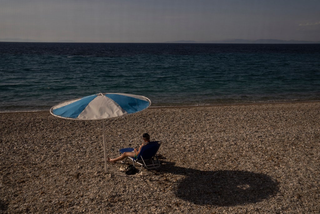 “I won’t hide it, we prefer it when it’s quieter,” said Alain Dumeslil, who wandered down to the cove of Agios Isidoros with his wife Corinne after swimming in the turquoise sea nearby. From Nice in France, the couple frequently visit Greece in late September when most tourists have left.