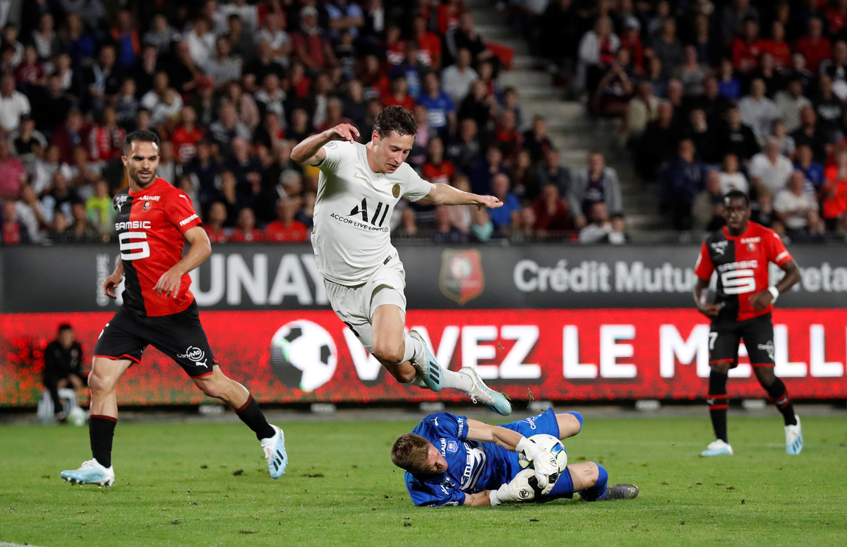 Rennes, though, drew level on the brink of half time when Niang took down a cross just inside the PSG box, turned his marker and lashed a left-foot finish into the bottom corner.