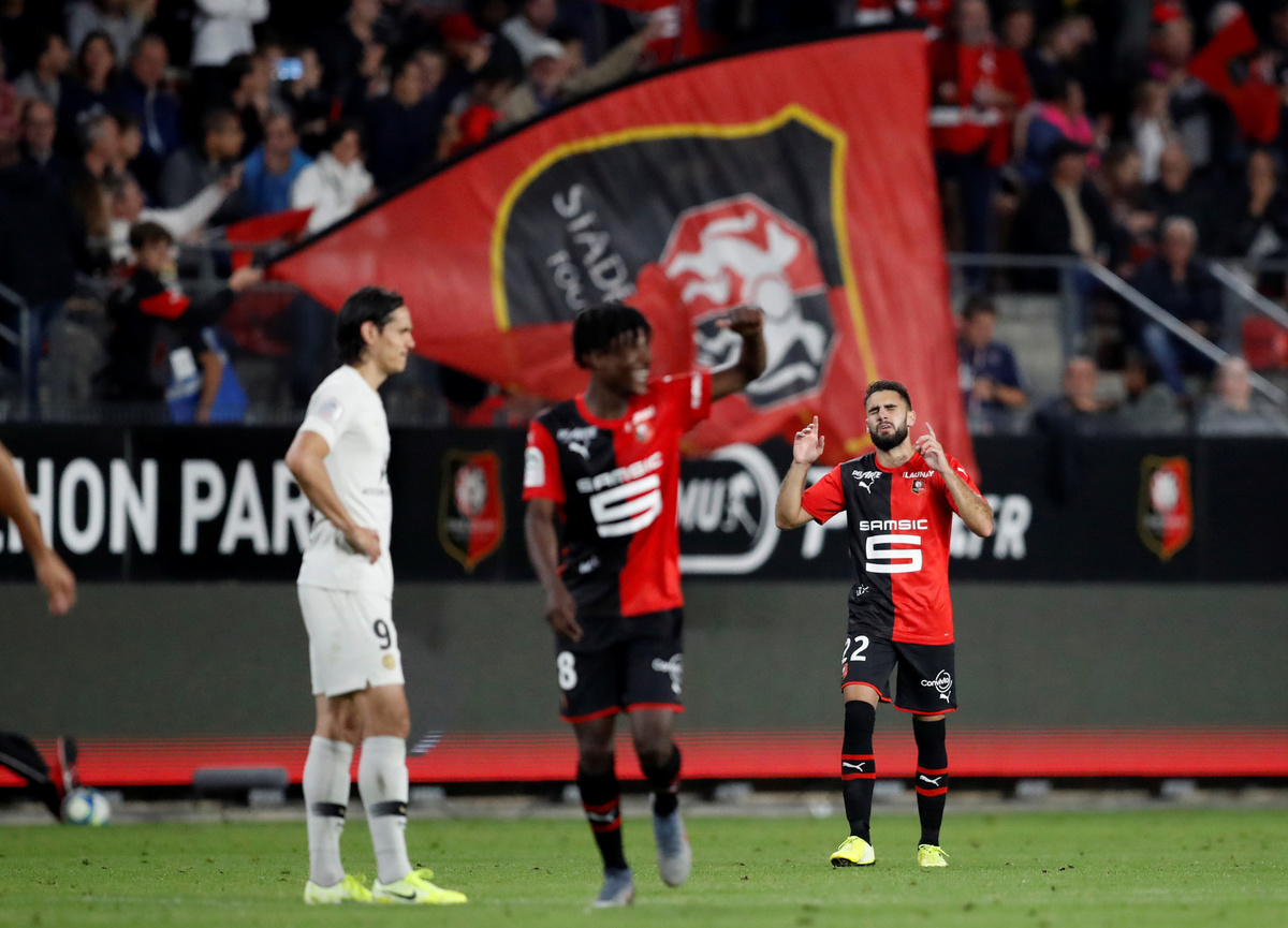 Sunday's victory marked Rennes' fifth Ligue 1 win against the Parisians in the last 10 years, more than any other club. They also beat the Parisians in last season's French Cup final.