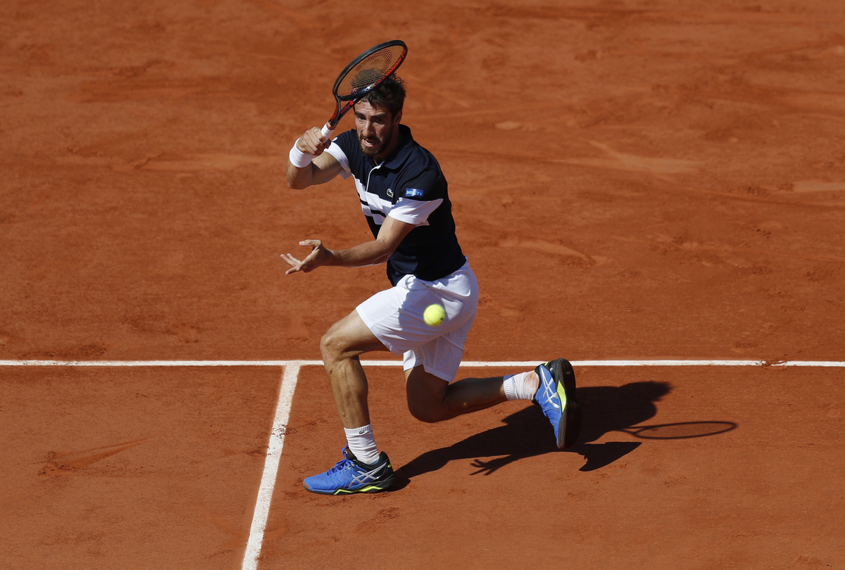 PARIS (Reuters) - Last year's runner-up Dominic Thiem of Austria overcame a second-set blip as he huffed and puffed into the fourth round of the French Open with a 6-3 4-6 6-2 7-5 win against Uruguay's Pablo Cuevas on Saturday.