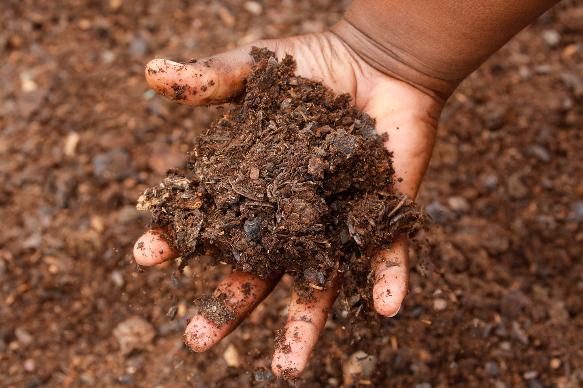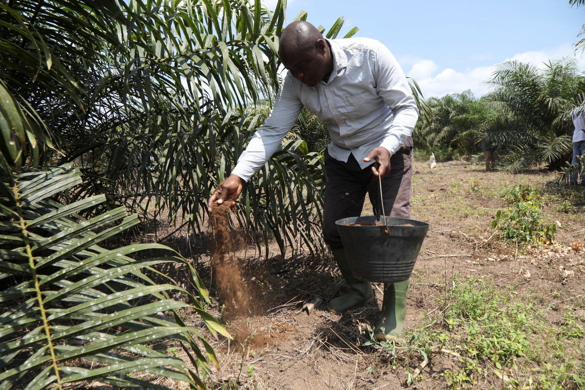 Farmers like palm oil producer Michel Ahouri simply throw in organic matter and wait four weeks. One box can create 150 kg (330 lbs) of compost per month.