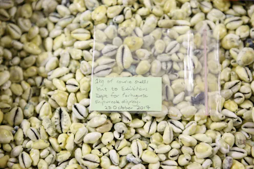 Despite its sinking, then, the entanglement between slaves and cowries was so fundamental that the São Bento still effected a kind of human-cowrie conversion: three surviving slaves shipped out of Delagoa Bay half a year after the accident for three slaves’ worth of salvaged cowries bequeathed to a museum over four centuries later.