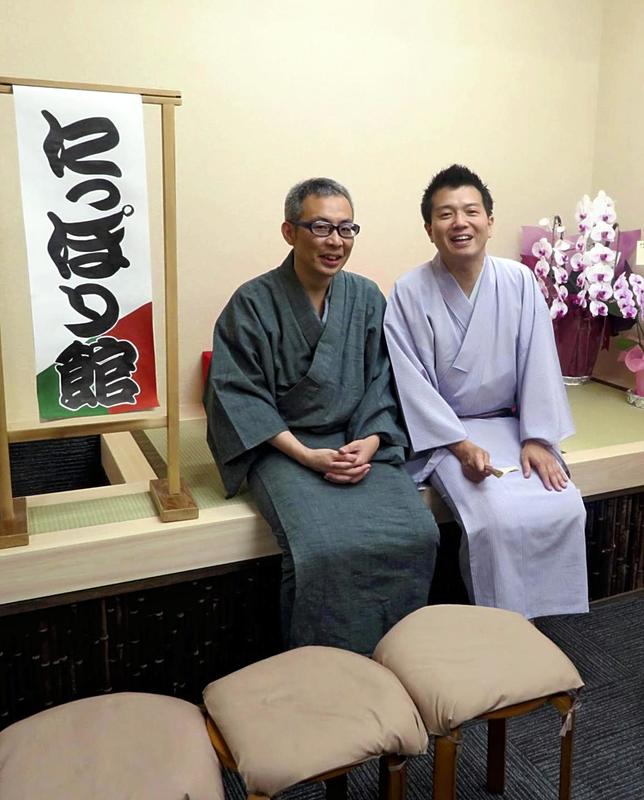 Hayashiya and Sanyutei have had similar rakugo careers and are good friends, although they belong to different organizations -- Hayashiya to the Rakugo Kyokai association, and Sanyutei to the Godaime Enraku Ichimonkai group.