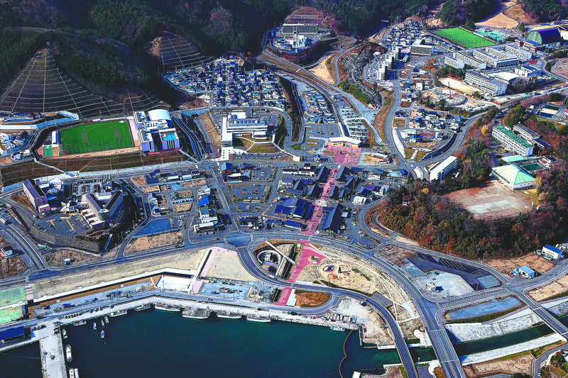Kajima used special heavy machinery to reduce noise and vibrations, and employed less explosives than usual. The work to develop a safe residential area ultimately continued for 4-1/2 years, scraping away earth and sand equivalent to 1.2 million 10-ton dump trucks.