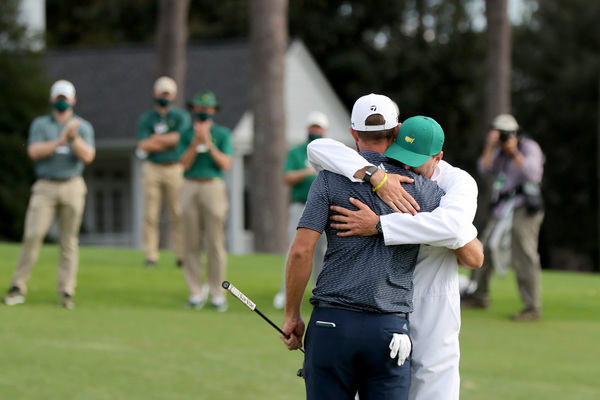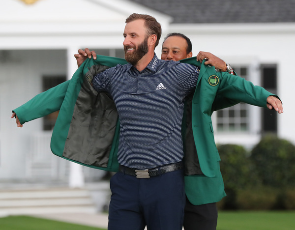 Dustin Johnson celebrates with his girlfriend Paulina Gretzky after Johnson won the 2020 Masters on the 18th green Sunday, Nov. 15, 2020 at Augusta National in Augusta, Georgia. (Curtis Compton/Atlanta Journal-Constitution/TNS)Cameron Smith, right, watches his tee shot as Dylan Frittelli prepares to hit on the seventh hole during the final round of the Masters Sunday, Nov. 15, 2020 at Augusta National in Augusta, Georgia. (Curtis Compton/Atlanta Journal-Constitution/TNS)Cameron Smith reacts after missing his birdie attempt on the 13th green during the final round of the Masters Sunday, Nov. 15, 2020 at Augusta National in Augusta, Georgia. (Curtis Compton/Atlanta Journal-Constitution/TNS)Justin Thomas hits out of the fairway on the second hole during the final round of the Masters Sunday, Nov. 15, 2020 at Augusta National in Augusta, Georgia. (Curtis Compton/Atlanta Journal-Constitution/TNS)Dustin Johnson walks up the 18th green as course workers applaud on the scoreboard during the final round of the Masters Sunday, Nov. 15, 2020 at Augusta National in Augusta, Georgia. (Curtis Compton/Atlanta Journal-Constitution/TNS)Tiger Woods looks over his shot on the first green during the final round of the Masters Sunday, Nov. 15, 2020 at Augusta National in Augusta, Georgia. (Curtis Compton/Atlanta Journal-Constitution/TNS)The Masters trophy, left, and the amateur trophy are brought out to be presented following the 2020 Masters Sunday, Nov. 15, 2020 at Augusta National in Augusta, Georgia. (Curtis Compton/Atlanta Journal-Constitution/TNS)Abraham Ancer tees off on the fourth hole during the final round of the Masters Sunday, Nov. 15, 2020 at Augusta National in Augusta, Georgia. (Curtis Compton/Atlanta Journal-Constitution/TNS)Dustin Johnson reacts after a birdie on the 13th hole during the final round of the Masters Sunday, Nov. 15, 2020 at Augusta National in Augusta, Georgia. (Curtis Compton/Atlanta Journal-Constitution/TNS)Tiger Woods presents Dustin Johnson his green jacket after he won the Masters at Augusta National Golf Club on Sunday, Nov. 15, 2020 in Augusta, Georgia. (Curtis Compton/Atlanta Journal-Constitution/TNS)Cameron Champ tees off on the second hole during the final round of the Masters Sunday, Nov. 15, 2020 at Augusta National in Augusta, Georgia. (Curtis Compton/Atlanta Journal-Constitution/TNS)Dustin Johnson walks over the Sarazen Bridge on his way to the 15th green as spectators applaud during the final round of the Masters Sunday, Nov. 15, 2020 at Augusta National in Augusta, Georgia. (Curtis Compton/Atlanta Journal-Constitution/TNS)Tiger Woods hits his second shot on the second fairway during the final round of the Masters Sunday, Nov. 15, 2020 at Augusta National in Augusta, Georgia. (Curtis Compton/Atlanta Journal-Constitution/TNS)Dustin Johnson reacts after making a birdie on the 15th hole during the final round of the Masters Sunday, Nov. 15, 2020 at Augusta National in Augusta, Georgia. (Curtis Compton/Atlanta Journal-Constitution/TNS)Last year's Masters champion Tiger Woods (right) applauds after Woods presented Dustin Johnson his first green jacket after winning the Masters Tournament in front of Butler Cabin Sunday, Nov. 15, 2020 at Augusta National in Augusta, Georgia. (Curtis Compton/Atlanta Journal-Constitution/TNS)Patrick Reed tees off on the third hole during the final round of the Masters Sunday, Nov. 15, 2020 at Augusta National in Augusta, Georgia. (Curtis Compton/Atlanta Journal-Constitution/TNS)Dustin Johnson reacts after winning the 2020 Masters with his brother and caddie Austin Johnson on the 18th green following the final round of the Masters Sunday, Nov. 15, 2020 at Augusta National in Augusta, Georgia. (Curtis Compton/Atlanta Journal-Constitution/TNS)Cameron Smith tees off on the third hole during the final round of the Masters Sunday, Nov. 15, 2020 at Augusta National in Augusta, Georgia. (Curtis Compton/Atlanta Journal-Constitution/TNS)Dustin Johnson reacts after being presented his first green jacket after winning the Masters Tournament in front of Butler Cabin Sunday, Nov. 15, 2020 at Augusta National in Augusta, Georgia. (Curtis Compton/Atlanta Journal-Constitution/TNS)Dustin Johnson reacts to his shot toward the flag on the second green during the final round of the Masters Sunday, Nov. 15, 2020 at Augusta National in Augusta, Georgia. (Curtis Compton/Atlanta Journal-Constitution/TNS)Rory McIlroy chips to the 10th hole during the final round of the Masters Sunday, Nov. 15, 2020 at Augusta National in Augusta, Georgia. (Curtis Compton/Atlanta Journal-Constitution/TNS)Course workers blow off pine straw and debris on the 10th green as golfers approach during the final round of the Masters Sunday, Nov. 15, 2020 at Augusta National in Augusta, Georgia. (Curtis Compton/Atlanta Journal-Constitution/TNS)Dustin Johnson reacts after a birdie on the 13th hole during the final round of the Masters Sunday, Nov. 15, 2020 at Augusta National in Augusta, Georgia. (Curtis Compton/Atlanta Journal-Constitution/TNS)Cameron Smith hits out of the bunker on the 10th hole during the final round of the Masters Sunday, Nov. 15, 2020 at Augusta National in Augusta, Georgia. (Curtis Compton/Atlanta Journal-Constitution/TNS)Dustin Johnson looks over his shot off of the seventh fairway during the final round of the Masters Sunday, Nov. 15, 2020 at Augusta National in Augusta, Georgia. (Curtis Compton/Atlanta Journal-Constitution/TNS)Dustin Johnson walks over the Sarazen Bridge on his way to the 15th green as spectators applaud during the final round of the Masters Sunday, Nov. 15, 2020 at Augusta National in Augusta, Georgia. (Curtis Compton/Atlanta Journal-Constitution/TNS)Wearing his signature red shirt, Tiger Woods tees off on the third hole during the final round of the Masters Sunday, Nov. 15, 2020 at Augusta National in Augusta, Georgia. (Curtis Compton/Atlanta Journal-Constitution/TNS)Brooks Koepka hits to the 10th hole during the final round of the Masters Sunday