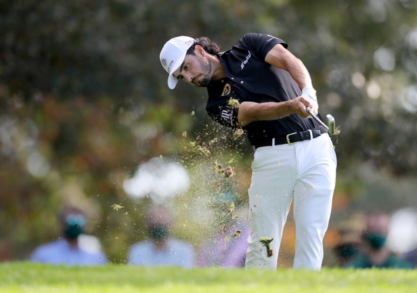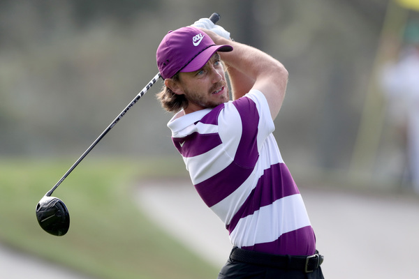 Tommy Fleetwood tees off on the second hole during the final round of the Masters Sunday, Nov. 15, 2020 at Augusta National in Augusta, Georgia. (Curtis Compton/Atlanta Journal-Constitution/TNS)
