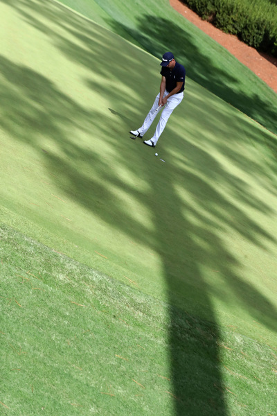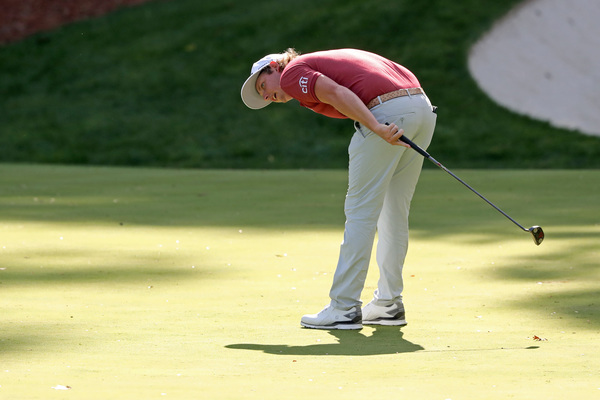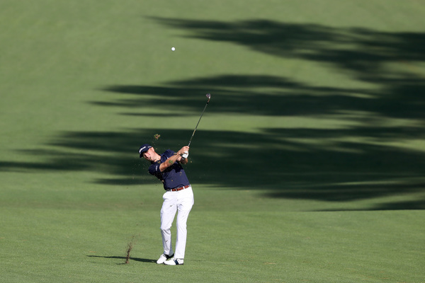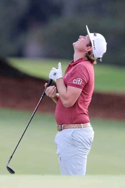 Smith was in scramble mode much of the day — and still managed birdies. On No. 7, he hit well right of the fairway, found an opening to hit the green and made a 10-foot birdie putt. On No. 9, he again found the pinestraw to the right of the fairway, hit a 9-iron that hit the side of the green and rolled to four feet for another birdie. On No. 15, he tried to go for the par-5 in two and his second shot finished left of the Sarazen Bridge that crosses the pond. He still hit the green and made an 11-footer for birdie.
