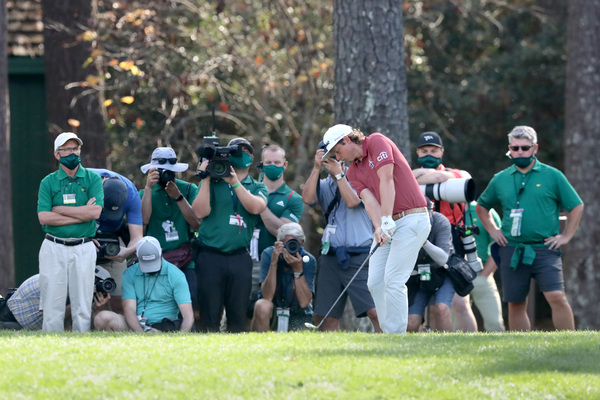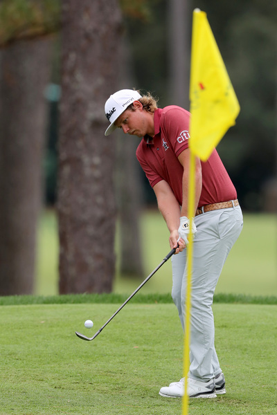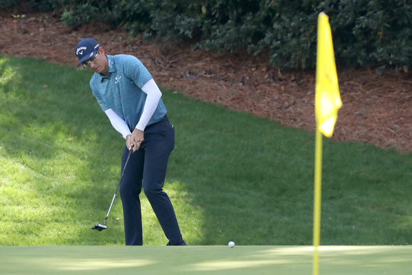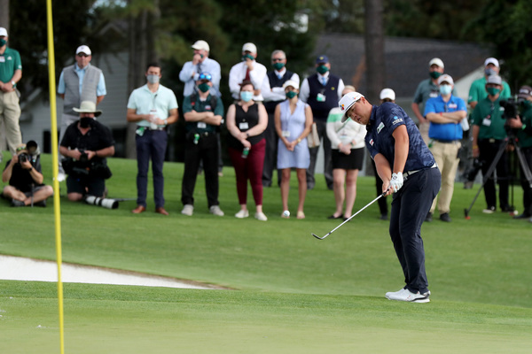 Sungjae Im hits on the 18th green during the final round of the Masters Sunday, Nov. 15, 2020 at Augusta National in Augusta, Georgia. (Curtis Compton/Atlanta Journal-Constitution/TNS)
