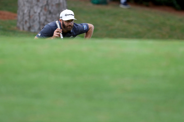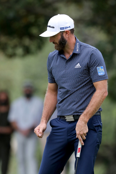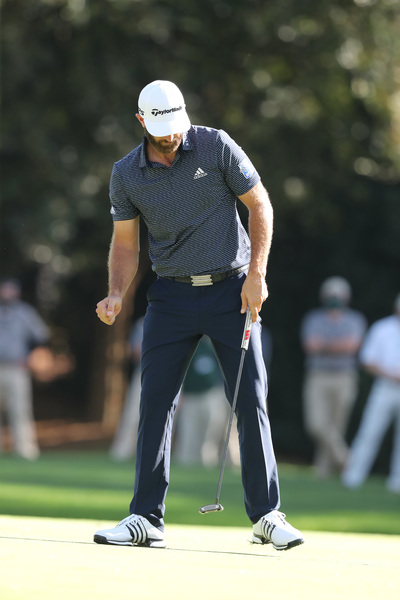 Dustin Johnson reacts after a birdie on the 13th hole during the final round of the Masters Sunday, Nov. 15, 2020 at Augusta National in Augusta, Georgia. (Curtis Compton/Atlanta Journal-Constitution/TNS)