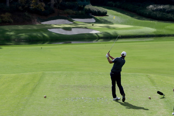 Sungjae Im waits to tee off on the fourth hole during the final round of the Masters Sunday, Nov. 15, 2020 at Augusta National in Augusta, Georgia. (Curtis Compton/Atlanta Journal-Constitution/TNS)