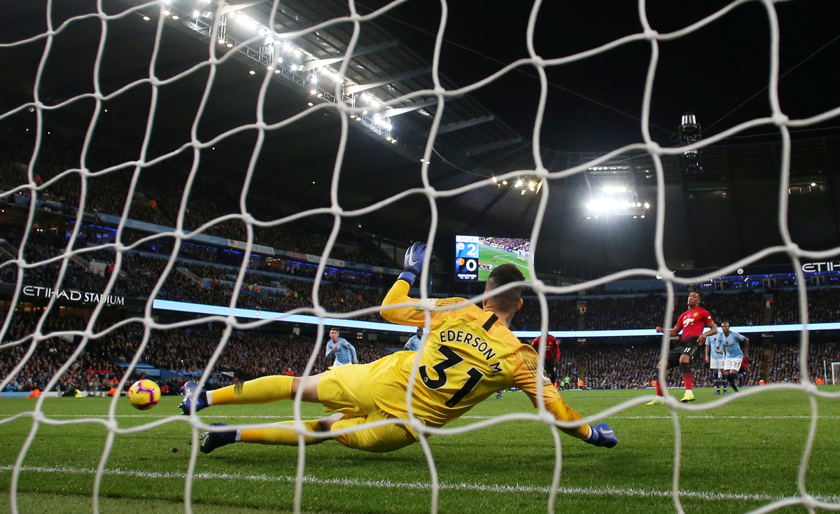 Lukaku was brought down inside the area by City keeper Ederson and French forward Anthony Martial confidently converted the spot kick.
