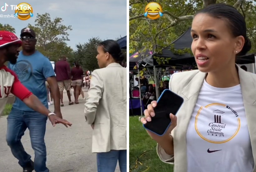 She also posted the video to Twitter with the caption: “Broke: Jealous men. Woke: Your fiancé keeps the camera rolling while you get hit on—then the clip goes viral on tiktok [sic].”