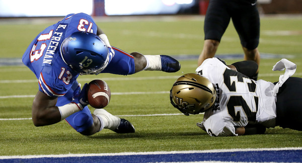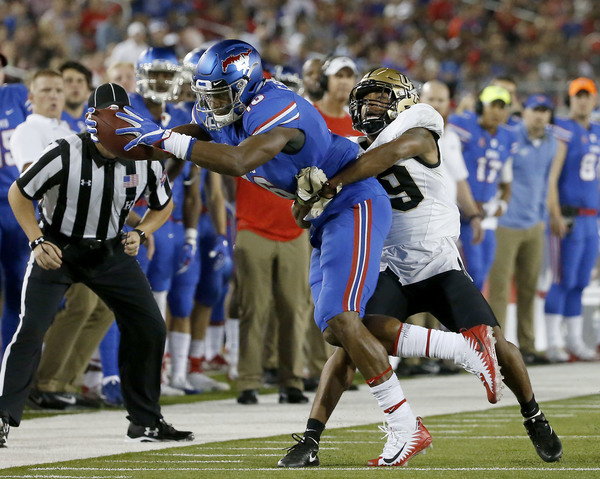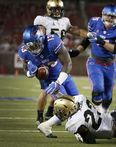 SMU squandered two opportunities for touchdowns in the second quarter. On third-and-2 from the UCF 10, Ke'Mon Freeman rushed nine yards to give the Mustangs a favorable goal-line situation. But as he went to the ground, Freeman lost control of the ball and fumbled into the end zone, where UCF's Tre Neal recovered the ball.