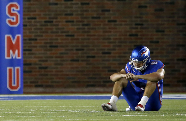 The offense couldn't deliver, though. Sure-handed wide receiver Trey Quinn dropped a fourth-and-3 pass with 5:22 to play and the Mustangs trailing by seven. The LSU transfer was wide open past the first-down marker but turned to run before he secured the ball. Quinn dropped to the turf and banged his hand on the field afterward.
