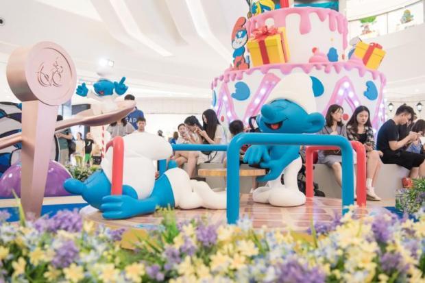 Children are invited to get close and personal with the adorable blue gnomes called the Smurfs during the Iconic Children's Playground At Iconsiam, which is running until Sunday.