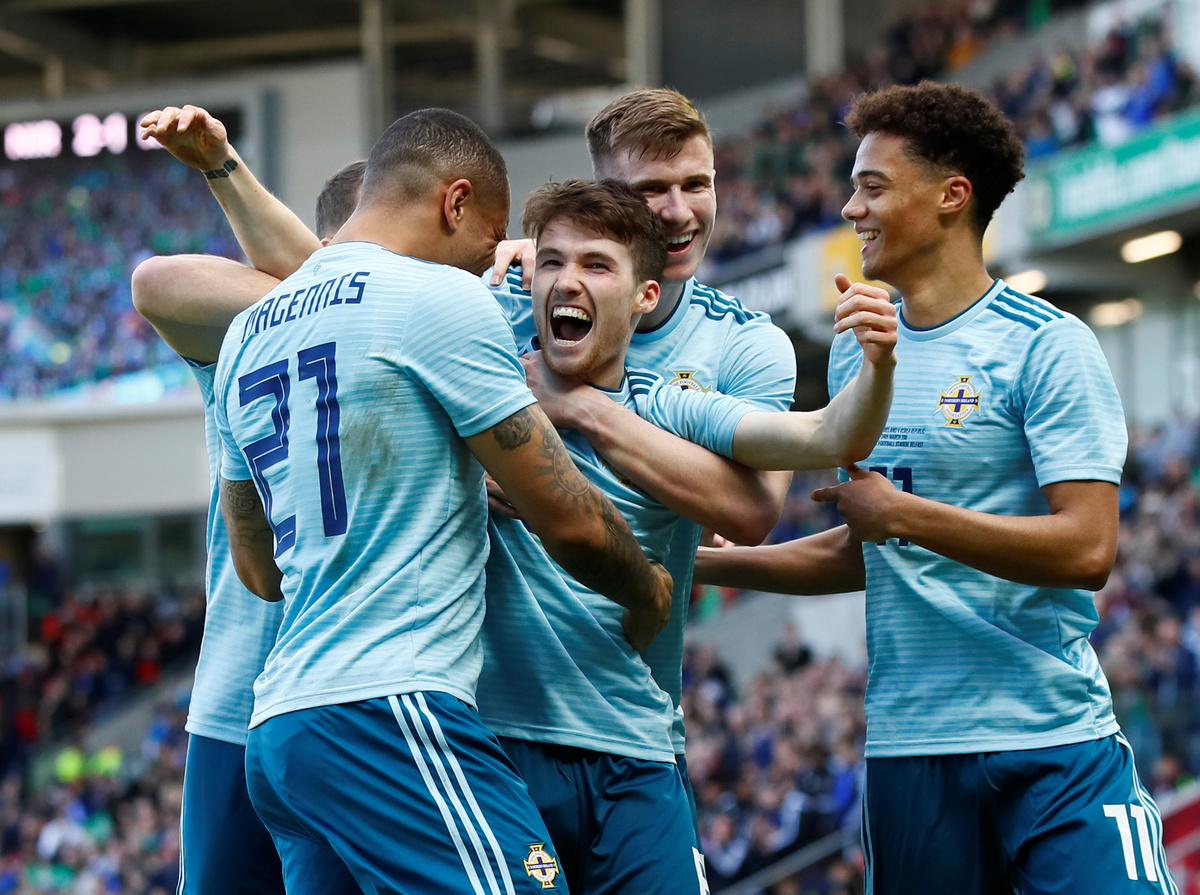 Soccer Football - International Friendly - Northern Ireland vs South Korea - National Football Stadium at Windsor Park, Belfast, Britain - March 24, 2018 Northern Ireland’s Paul Smyth celebrates scoring their second goal Action Images via Reuters/Jason Cairnduff