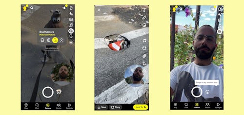 Snapchat isn’t totally playing into the BeReal hype, though — unlike BeReal, users won’t be prompted to use the Dual Camera feature at any specific time of day. The feature can also be used as many times as you’d like on just about every part of the Snapchat app.
