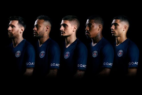PSG has lent its name and athletes to a couple of previous collaborations, including Dior’s off-field suit, a Stüssy jersey, and a fluorescent jersey inspired by an Air Jordan sneaker. Jordan Brand’s exclusive three-year deal with PSG expired this year after a one-year extension, so it looks like GOAT jumped in at just the right moment.