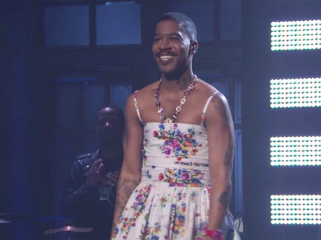 Kid Cudi has earned praise after performing a musical set wearing a floral dress on Saturday Night Live.