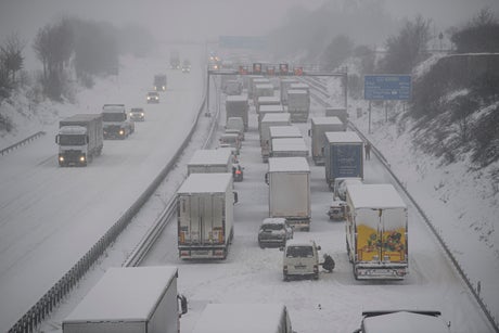 Trucks got stuck in snowdrifts overnight on the A4 highway near Gera in eastern Germany, while part of the A7 highway near Goettingen in northern Germany was closed after trucks became stuck on uphill stretches, news agency dpa reported.