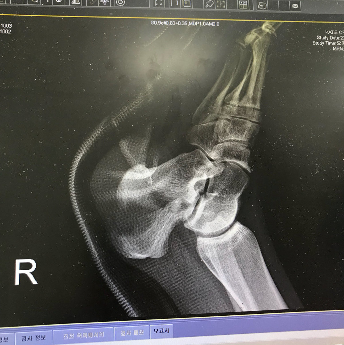 Image showing British snowboarder Katie Ormerod's injury after fracturing her wrist and heel in training, in Seoul, South Korea, February 9, 2018. REUTERS/Instagram/Omerodkatie