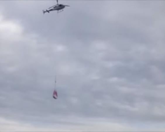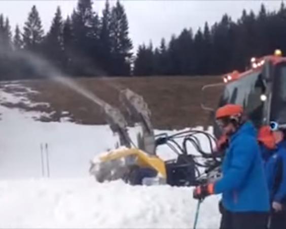 The video then pans over to a helicopter, which can be seen carrying fresh snow from high altitude snowfields, according to media outlet The Local.