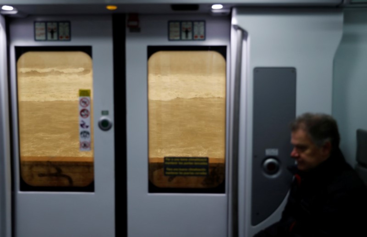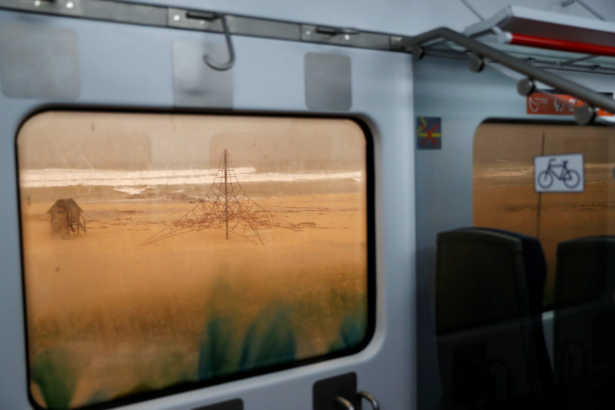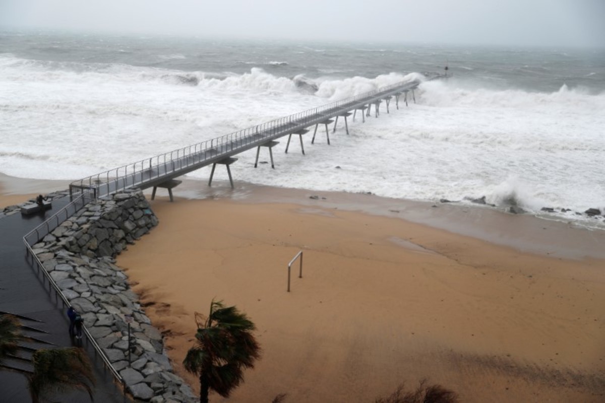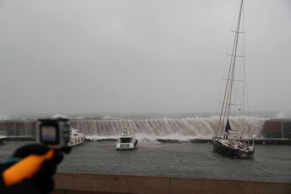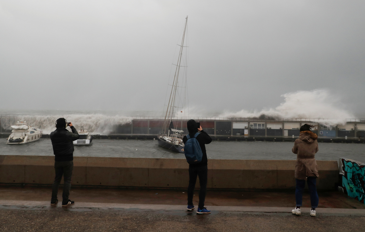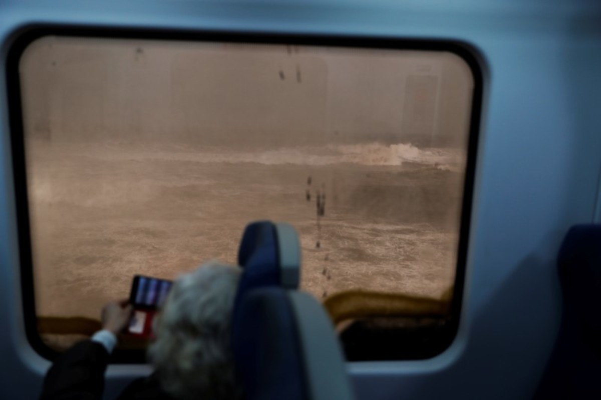 The Petroleum (Petroleo) bridge is pictured during the storm "Gloria" on Maresme coast in Badalona, near Barcelona, Spain, January 21, 2020. REUTERS/Nacho DoceA woman looks at the sea as she travels on a train during the storm "Gloria" on Maresme coast, near Barcelona, Spain, January 21, 2020. REUTERS/Nacho DoceA man travels in a train in front of the sea during the storm "Gloria" on Maresme coast, near Barcelona, Spain, January 21, 2020. REUTERS/Nacho DoceA beach is pictured from a train during the storm "Gloria" on Maresme coast, near Barcelona, Spain, January 21, 2020. REUTERS/Nacho DoceA woman takes pictures of the sea from the train during the storm "Gloria" on Maresme coast, near Barcelona, Spain, January 21, 2020. REUTERS/Nacho DoceA flooded plantation of persimmon trees is seen during the storm "Gloria" in Manuel, Spain, January 21, 2020. REUTERS/Juan MedinaThe storm "Gloria" is pictured at the Olympic Port of Barcelona, Spain, January 21, 2020. REUTERS/Nacho DoceA woman records the storm "Gloria" at Olympic Port of Barcelona, Spain, January 21, 2020. REUTERS/Nacho DocePeople take pictures of the storm "Gloria" at Olympic Port of Barcelona, Spain, January 21, 2020. REUTERS/Nacho Doce