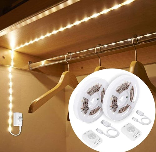 Whether you install these motion-sensor LED light strips in your closet, under your cabinets, beneath your bed, behind a bookcase, or along your hallway, they add convenience and a high-end feel. The magnetic battery pack is USB-rechargeable for plug-free use, and the strip has an adhesive backing for installation without drilling, screws, or tools.