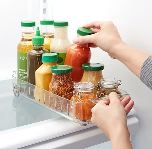 These roll-out caddies help you organize condiments, snacks, produce, and go-to ingredients — but unlike most plastic organizers, these have handles and smooth-rolling wheels so you can easily grab items all the way in the back. They also have two adjustable dividers for custom-like compartments and are easy to clean in case of spills.