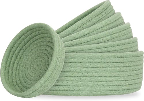 Collect your keys and wallet by the front door, display produce on the kitchen counter, create a welcoming toiletries basket in your guest bathroom, turn your perfume collection into a vanity-top display, or corral clutter in kids’ spaces. You’ll find countless uses for these rope baskets, which come in a set of six nesting sizes and are woven from high-density cotton that you can toss in the machine if it gets dirty.